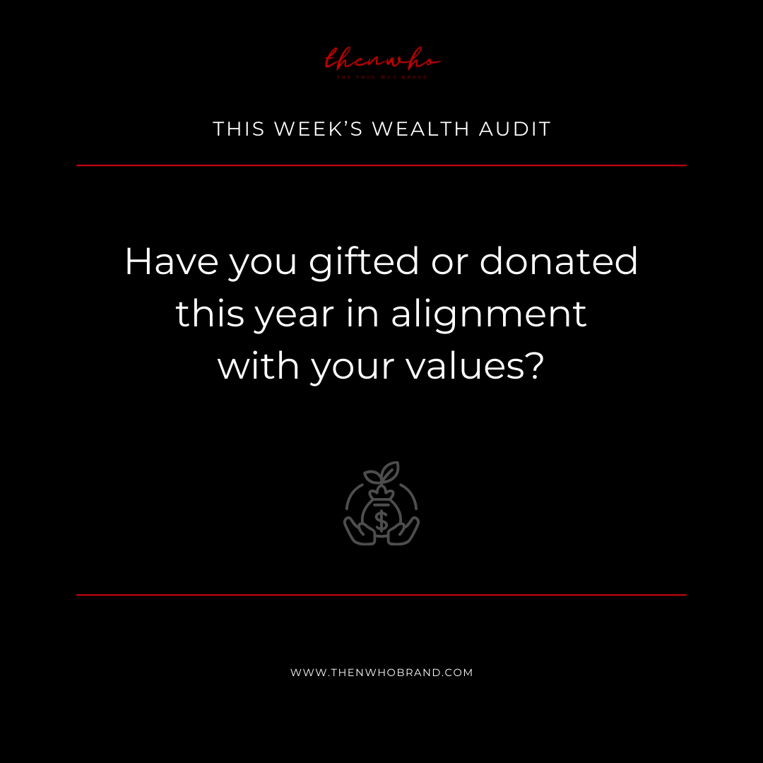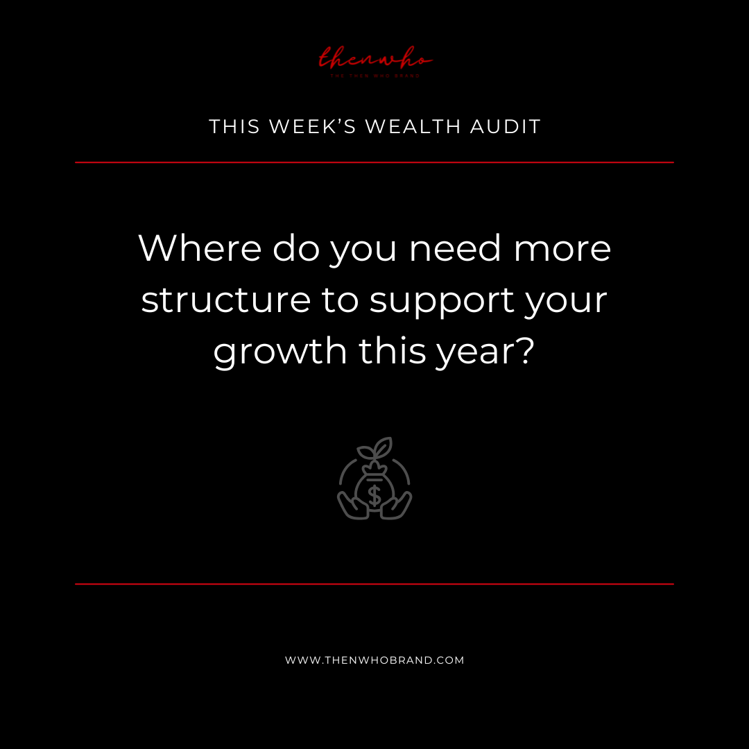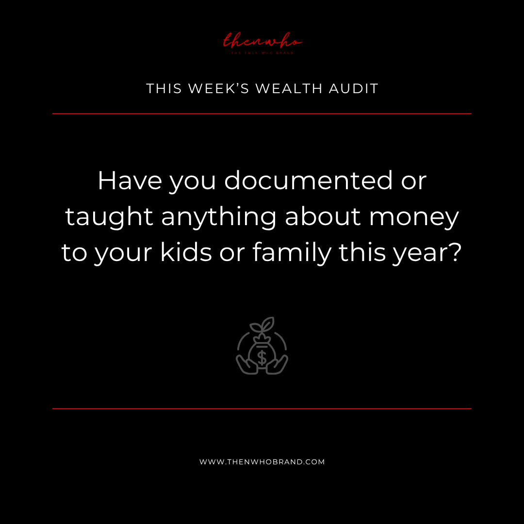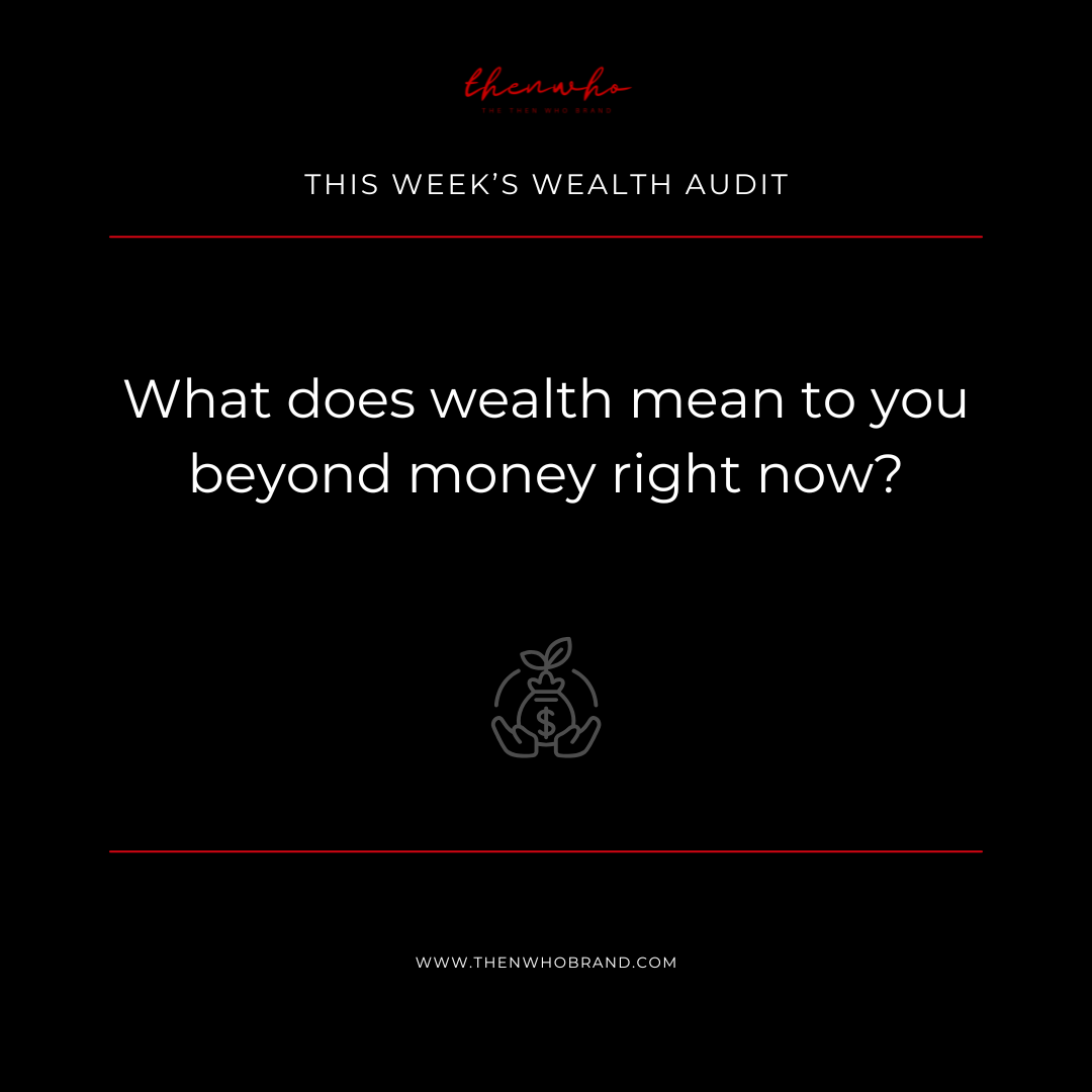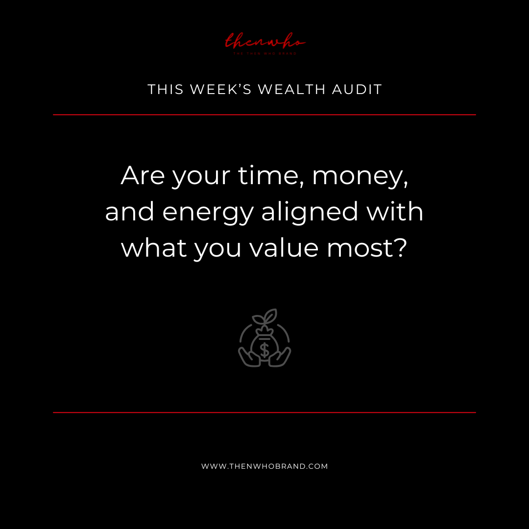 Our Weekly Wealth Audits are intentional check-ins designed to help you reflect, reset, and realign with your personal and financial goals. Each week, we focus on a different aspect of wealth—whether it's time, relationships, mindset, money, or health—reminding you that wealth is more than just what’s in your bank account. These bite-sized prompts and reflections are your opportunity to track progress, identify gaps, and build habits that support lasting legacy.
